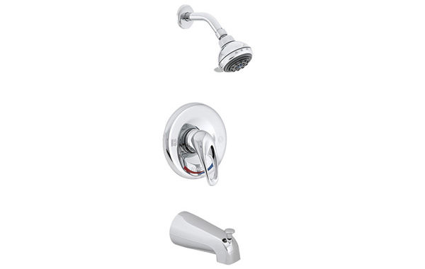 Pression équilibrée intégrée à la cartouche Limiteur de température ajustable Bec de baignoire de type Slip-on avec inverseur intégré